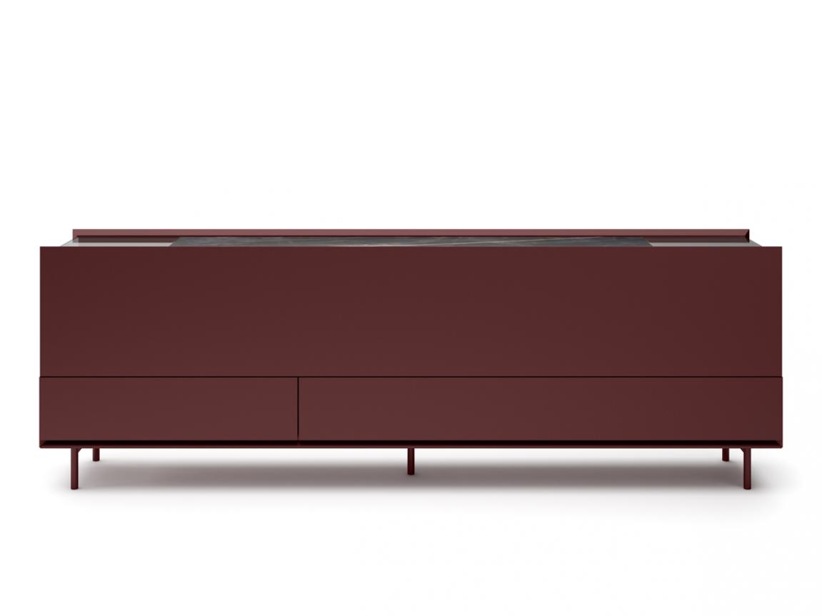 Sideboard available in all matt lacquers, or wood finishes, with 3mm (optional) ceramic top in all 3mm colours. Metal feet lacquered in all matt lacquer colours. Glass in dark, bronze or extra clear.
