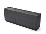 Sideboard available in all matt lacquers, or wood finishes, with 3mm (optional) ceramic top in all 3mm colours. Metal feet lacquered in all matt lacquer colours. Glass in dark, bronze or extra clear.
