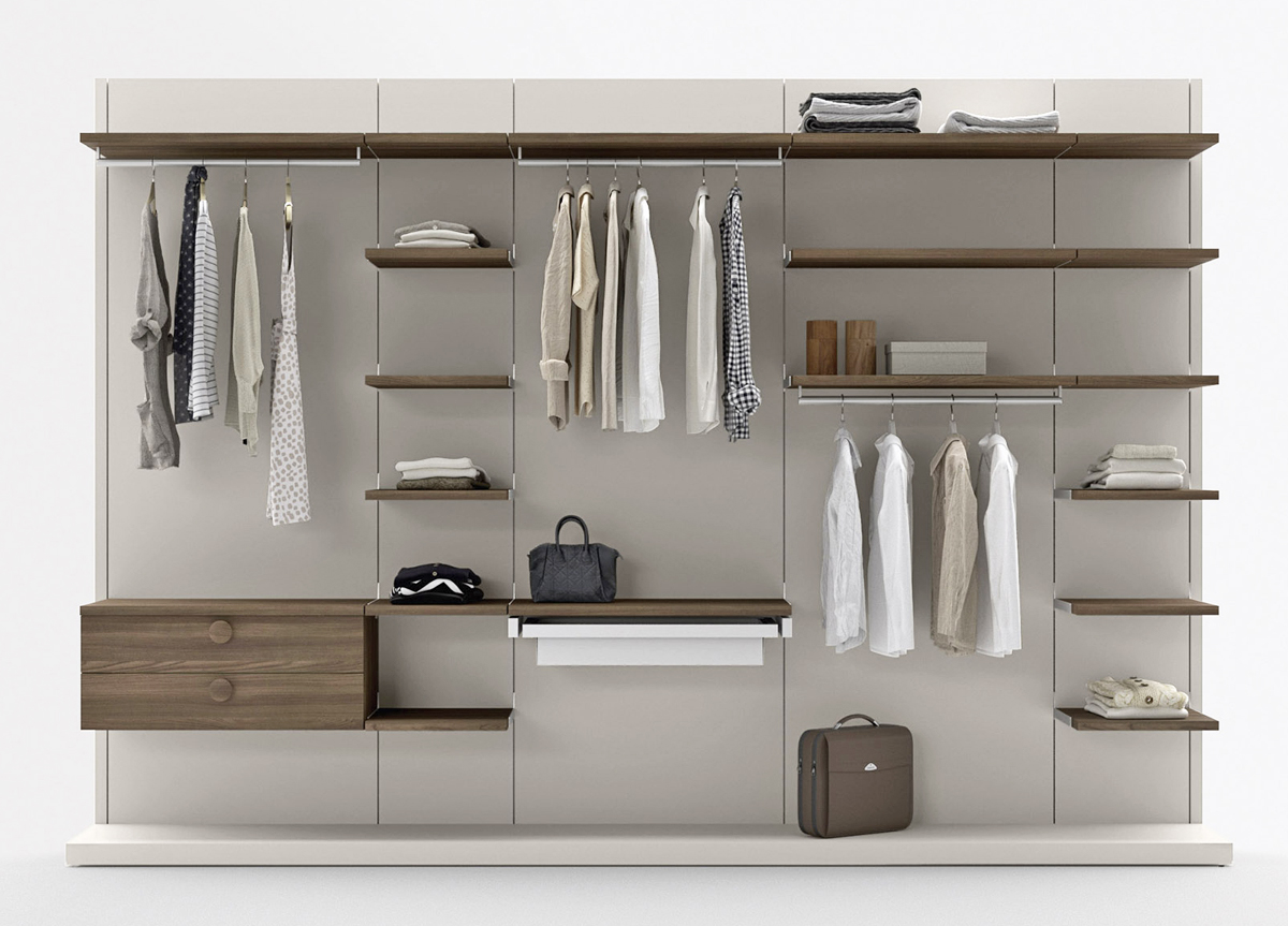 Part of our Cinquanta collection of wardrobes, the Aperto walk in wardrobe is made in Italy and is part of a versatile system that can be adapted to suit almost any space.
