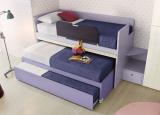 Useful side steps allow for easy access to the top bed. The desk is a pull out desk, so it can be neatly tucked away when not needed. The lower bed has the option to be on wheels if you use it daily, and has a useful storage area. It is also possible to add a third bed below the second bed, instead of storage, see final image.