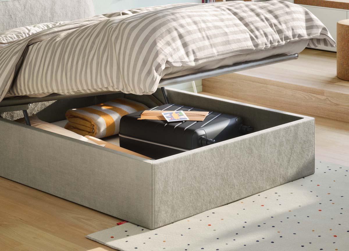This version of the Hug bed has a lift up storage base, which is powered by strong gas pistons, enabling you to use almost all of the space inside the base for storage.