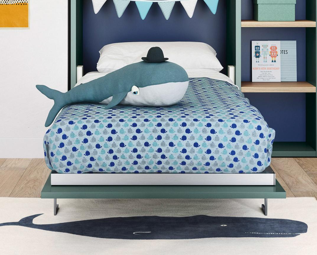 Shown here with Battistella's optional 'Spider' system on the inside panel - really useful for holding papers & small objects, & the large panel under the bed (seen when the bed is not being used) can be finished in the 'Graphic' whiteboard finish instead of a plain colour - or with the 'Spider' system.