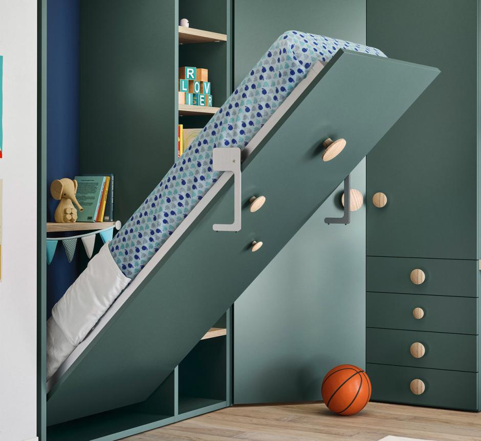 There is a deeper 'wardrobe size' version of this wall bed, as well as single or double fold down bunk beds, & horizontal wall beds (see related products). Nidi is an extensive collection of designer Italian accessories & furniture for children & young adults. From fabulous rugs & wall stickers to fitted wardrobes, with a huge choice of beds, bedroom furniture, desks, shelving & more. To see the online collection, please click here.