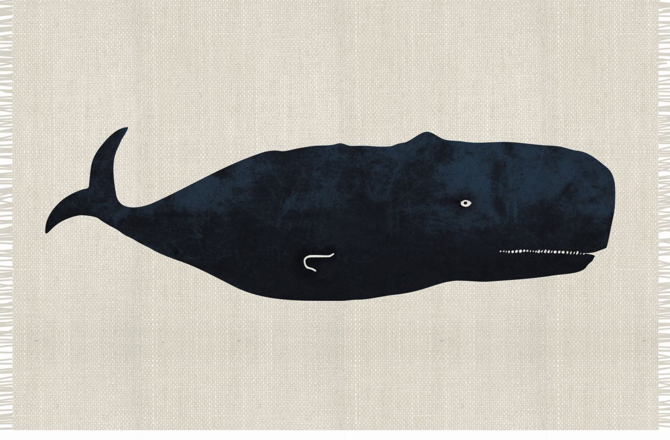 The rug is 100% cotton, and as shown in the images, is made up of a lovely natural colour, with the deep blue colour for the whale. The edges are made in a tradition rug style, with roped fringes and it is machine washable.