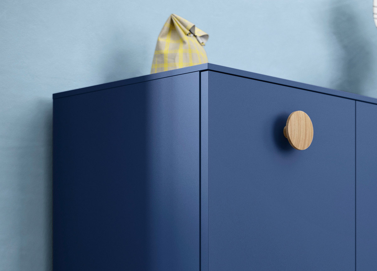 This great sideboard is available in two sizes and a range of finishes and colours. The Woody handles shown are included in the price, but it is possible to have this sideboard with different handles. The handles shown are 5.8cm diameter, with one super sized handle of 7.4cm
