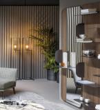 Wooden panel in coal ash or canaletto walnut. Metal shelves in white or supreme anthracite matt lacquer, or bronze, lead, pearl gold, matt brass, or matt copper metallic finishes. Maximum capacity 10kg per shelf. Requires wall fixing (not included)