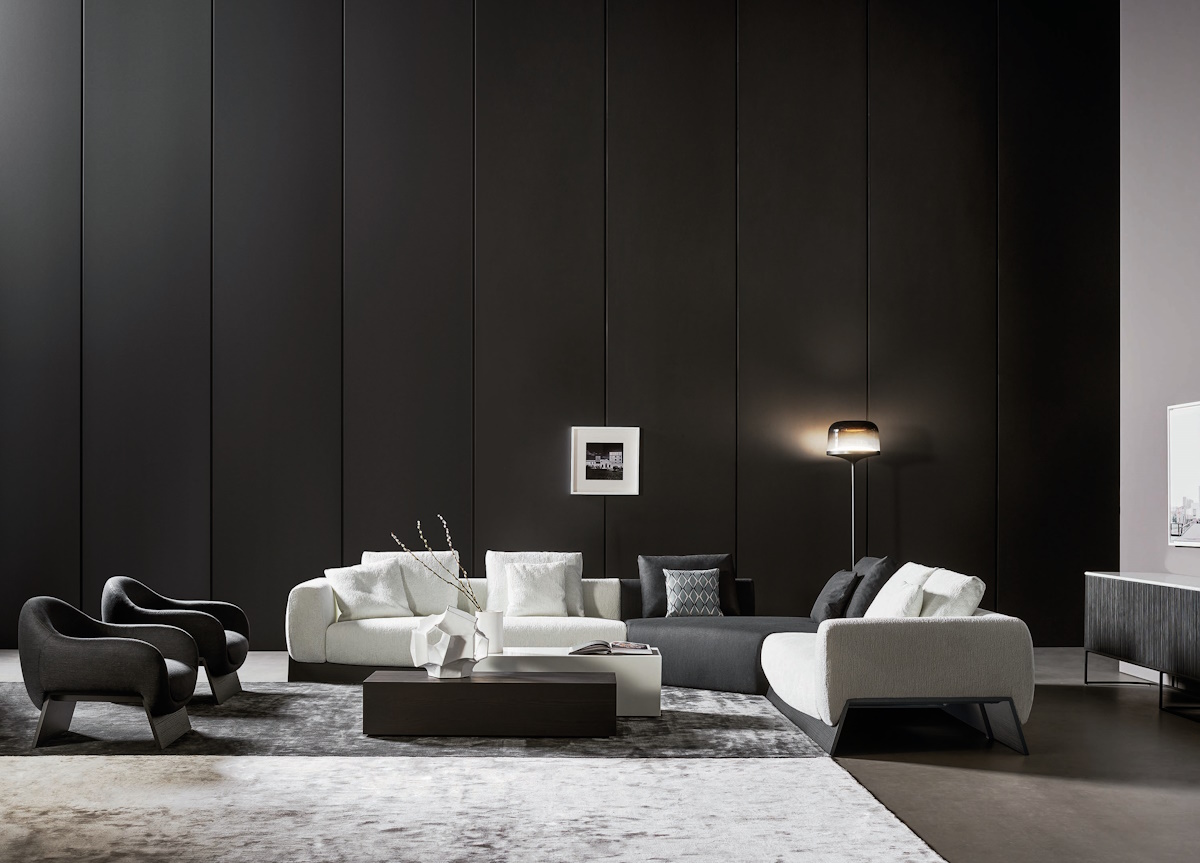 This new collection challenges the traditional canons of contemporary design thanks to a harmonious fusion between an enveloping style and a linear silhouette. But what truly sets Boolean apart is the unique frame: a bridge base in either Canaletto walnut or coal oak which crosses the upholstery longitudinally, modulating its volume to enhance its character and strong theatrical presence.