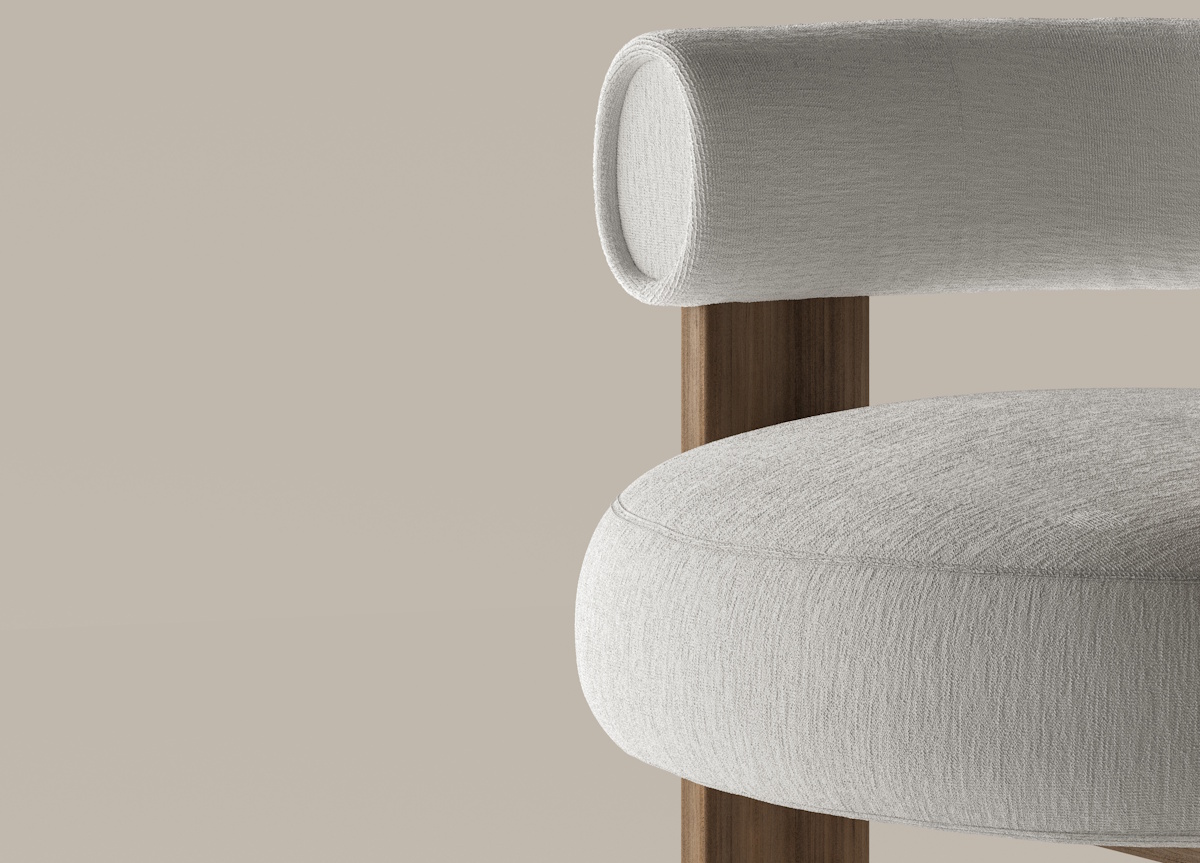 The round seat contrasts with the continuous tubular element that flows from backrest to armrest in a smooth, enveloping line. Its generous softness adds a relaxed character. Versatile and refined, Bull works beautifully alongside sofas, or as a standalone piece in living rooms, bedrooms, or reading corners.