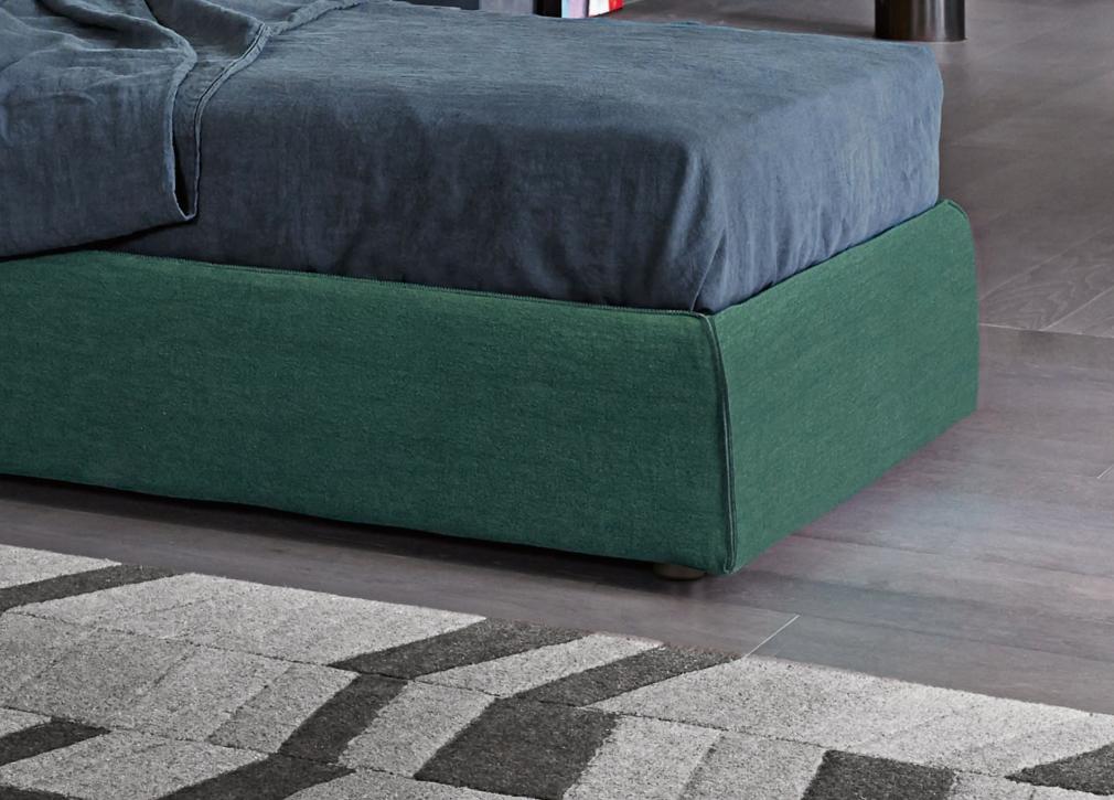 Campo has a deep upholstered bed frame and a soft, padded headboard that adapts comfortably to your body position. The colour shown in this image brings out the luxurious feel this bed has, which makes it equally suited for adults or children. Small cylindrical wooden feet are matt lacquered in anthracite grey.