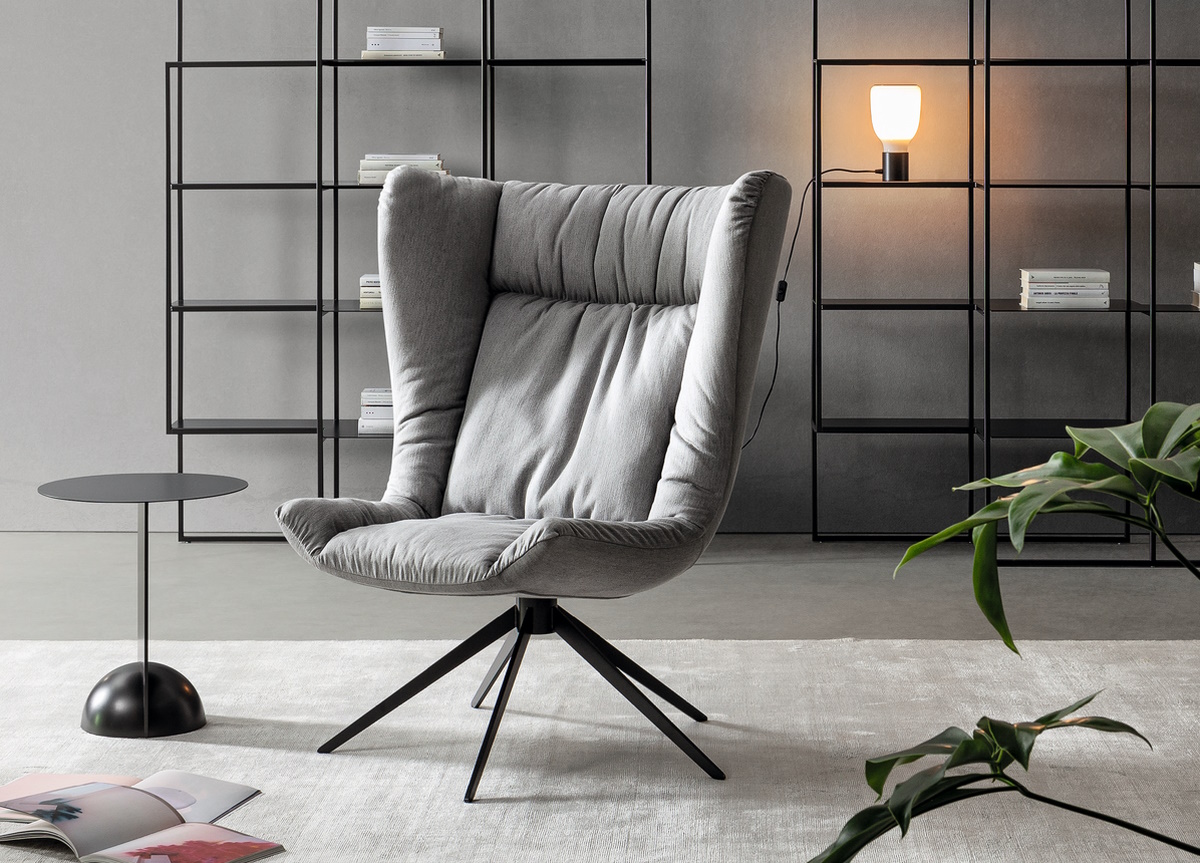 A metal five-spoke swivel base lends itself to the overall image of lightness and motion, recalling the idea of "comfort without gravity" conceived by Fabrice, the designer. This can be chosen in a range of finishes.