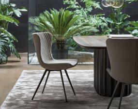 The Dorian table is perfect in any interior setting and is pictured here with a table top in American walnut with a brushed bronze base matched with the Colibri dining chair. Other images also show it with a Rosso Imperial ceramic table top and a brushed lead base. There is also a matching Dorian round dining table, as well as a sideboard and console table which can be seen in the related products.