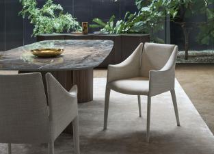The Bonaldo Flame Wood dining table designed by Gino Carollo features harmonious shapes and light, sinuous volumes.