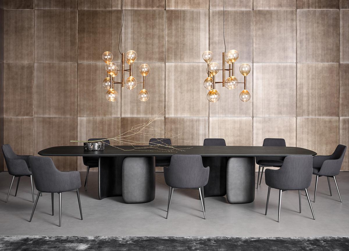 This is the Bonaldo Mellow 400 dining table from Bartoli Design which is four metres long and like the other Mellow tables it features soft and curvy shapes. It has two volumetric and enveloping bases, made from rigid polyurethane mouldings, combined with a rectangular table top with rounded, curved ends.