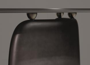 Table top in canaletto walnut or brushed coal oak. Bases can be selected in supreme anthracite, brushed bronze or brushed lead.