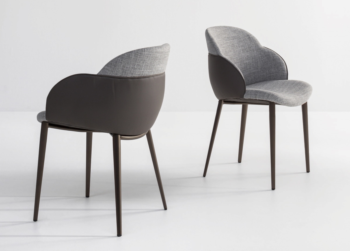 Available in fabric, ecoleather, & Capri leather. Not available in customer's own fabric. For a fabric front and a leather back bi-cover the leather category price is applicable. Metal legs in white, anthracite grey, brown, black, dove grey; or in plus metal: bronze, pearl gold, platinum or lead.