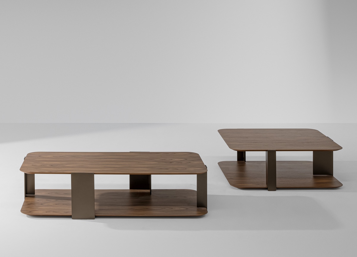 Paddle has a light, linear design with four different coffee table sizes to choose from. The smaller table has a single table top whilst the larger three tables have a double table top, all tables have a strong metal frame with softened rounded egdes.