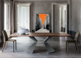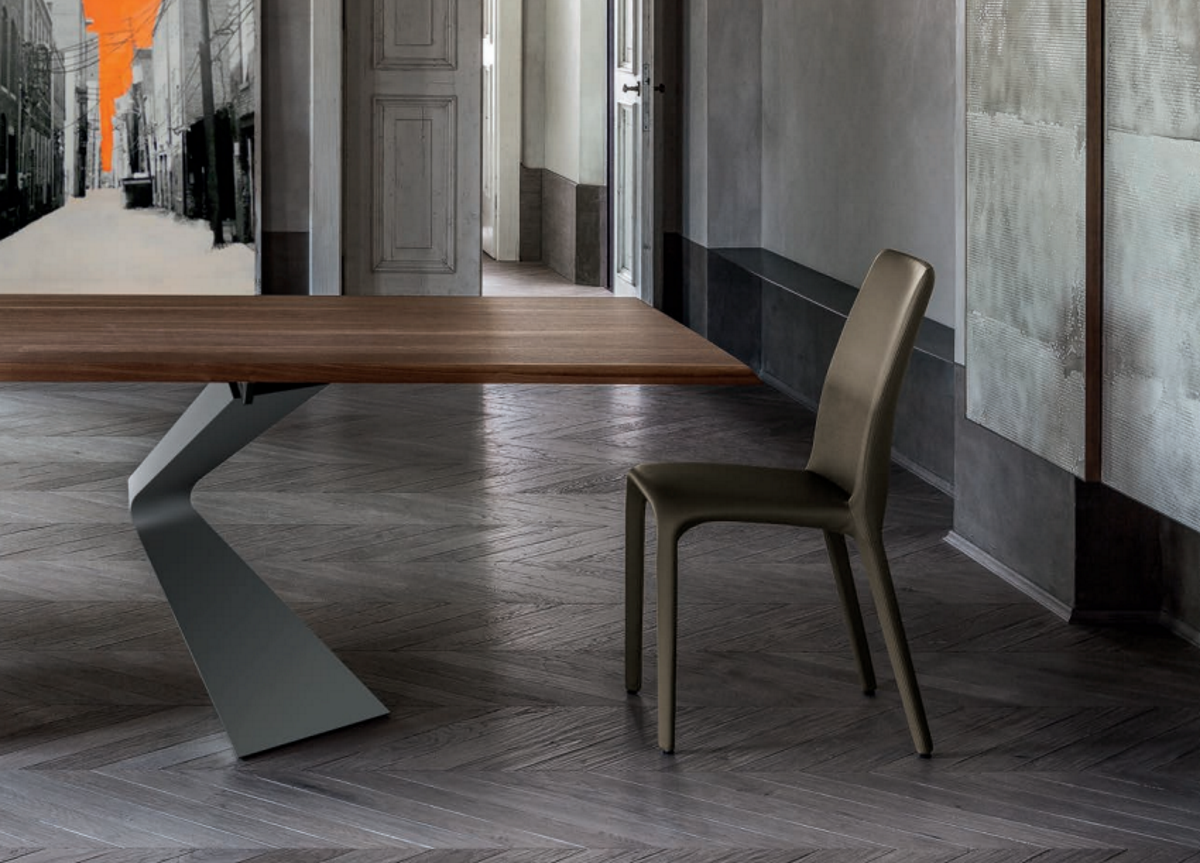 The popular Prora dining table designed by Mauro Lipparini for Bonaldo has fabulous steel legs, reminiscent of the bow of a ship and a gorgeous wood table top.