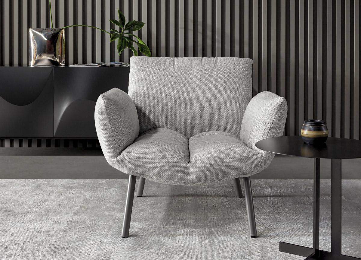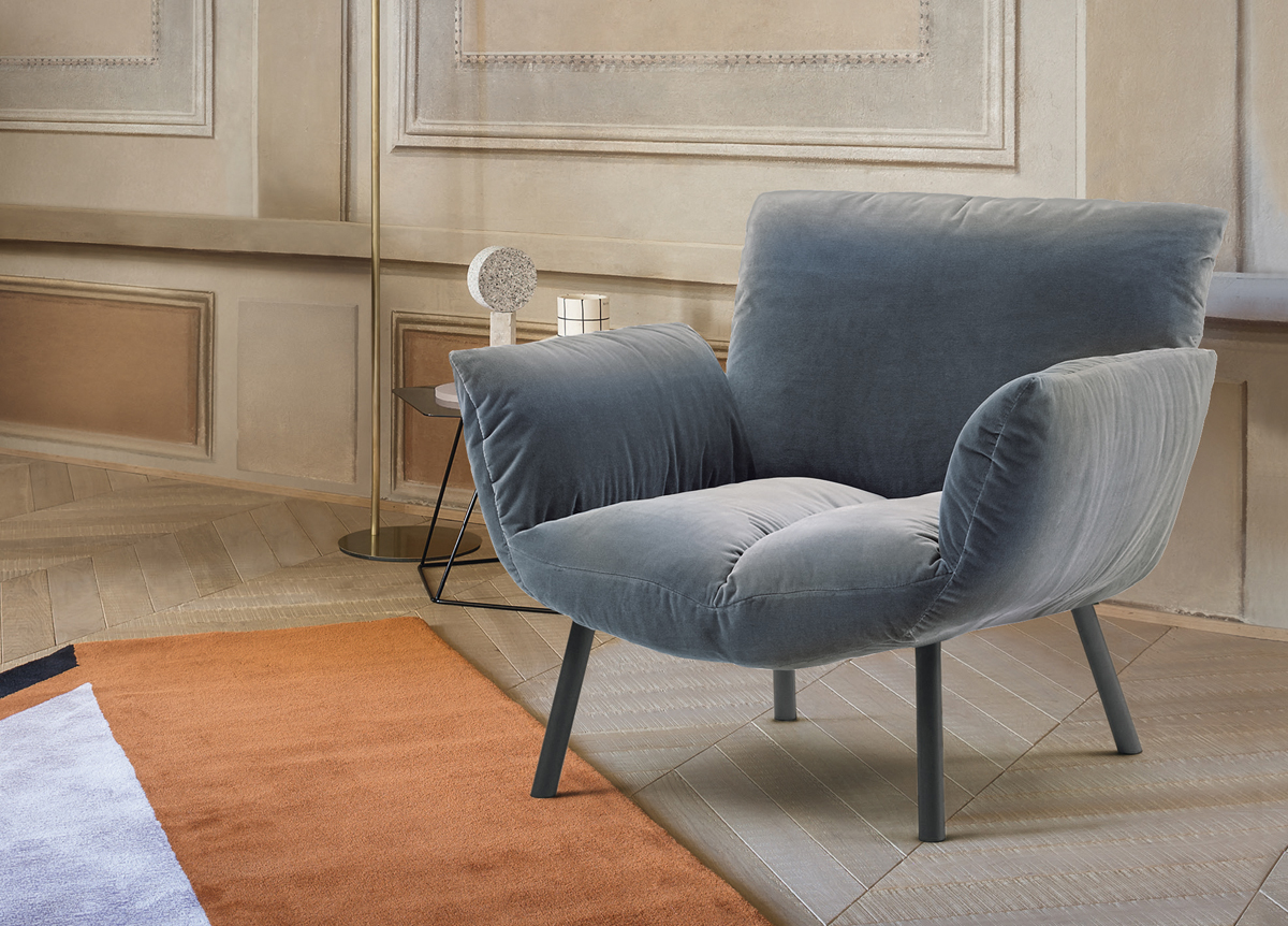The Bonaldo Pil armchair by Alessandro Busana takes his inspiration from the object that symbolises softness, namely the cushion. Made in Italy.