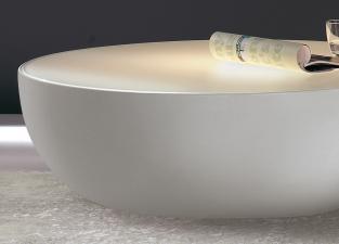 There are two sizes to choose from; 96cm diameter/33cm high or 117cm diameter/25cm high. The table top can be selected in acid treated glass, or hard wearing ceramic stone, although not all options are available for both sizes. A matching Planet coffee table with an internal light is also available - see related products.