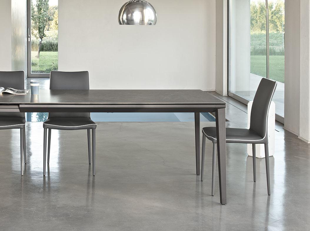 The table top and extension can be selected in a range of finishes; SuperCeramic, SuperMarble, gloss glass and velvet anti-scratch glass.