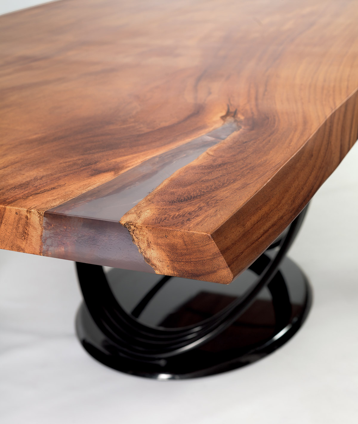 The sleek table top can be selected in lacquered, clear or Anti-Scratch velvet (softly frosted) glass, a range of wood finishes, or SuperMarble, which is heat, scratch, chemical & fire resistant - perfect for families and entertaining.