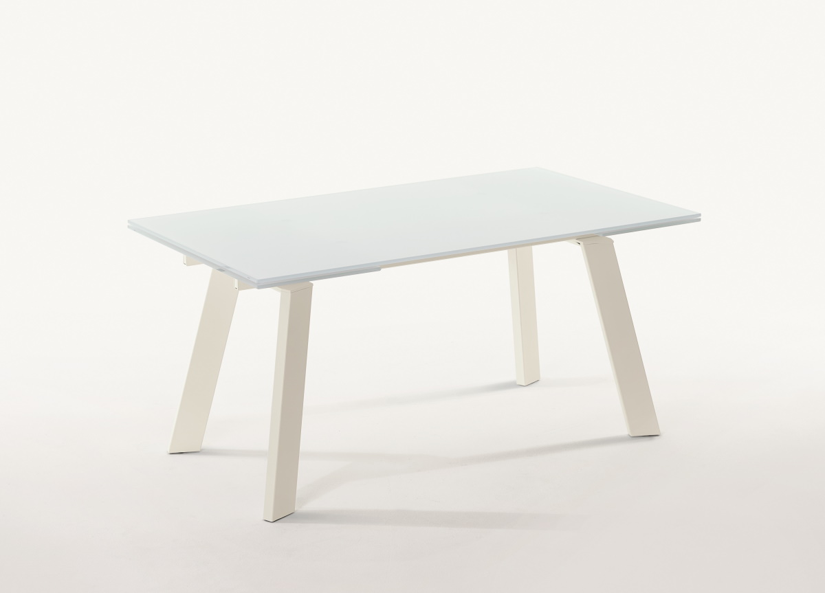 For the table top and matching extensions (which sit neatly underneath the table) you can choose from transparent extra clear glass, transparent smoke grey glass or extra white glossy lacquered glass