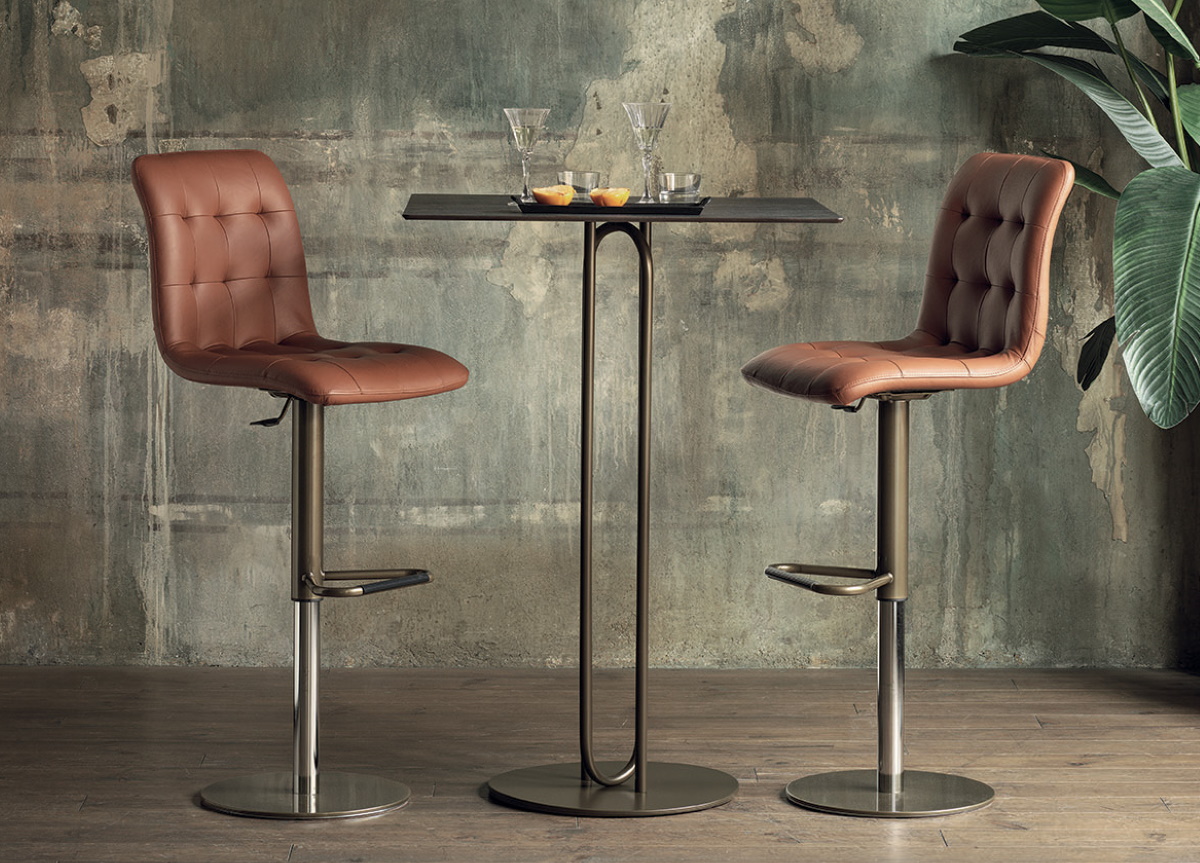 The Kuga bar stool from Bontempi has a luxuriously upholstered & buttoned seat, & is available in several different versions.
