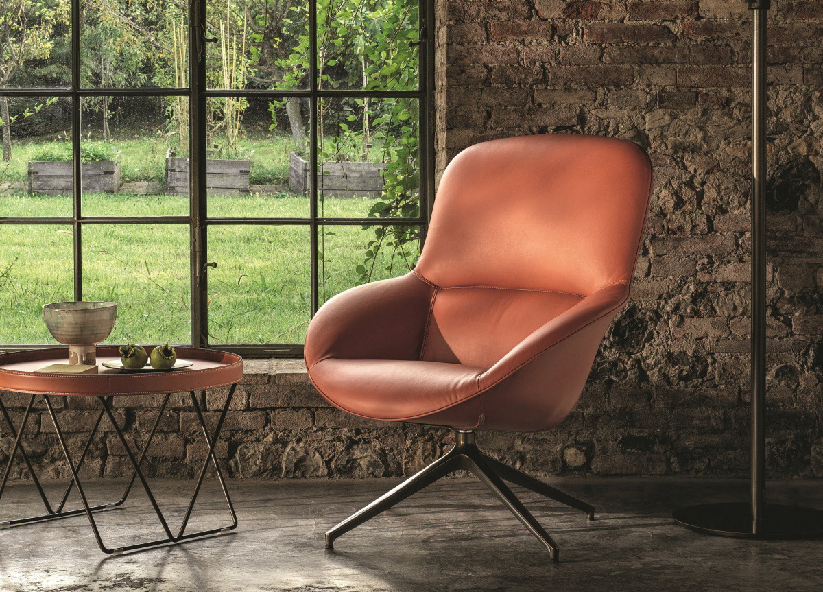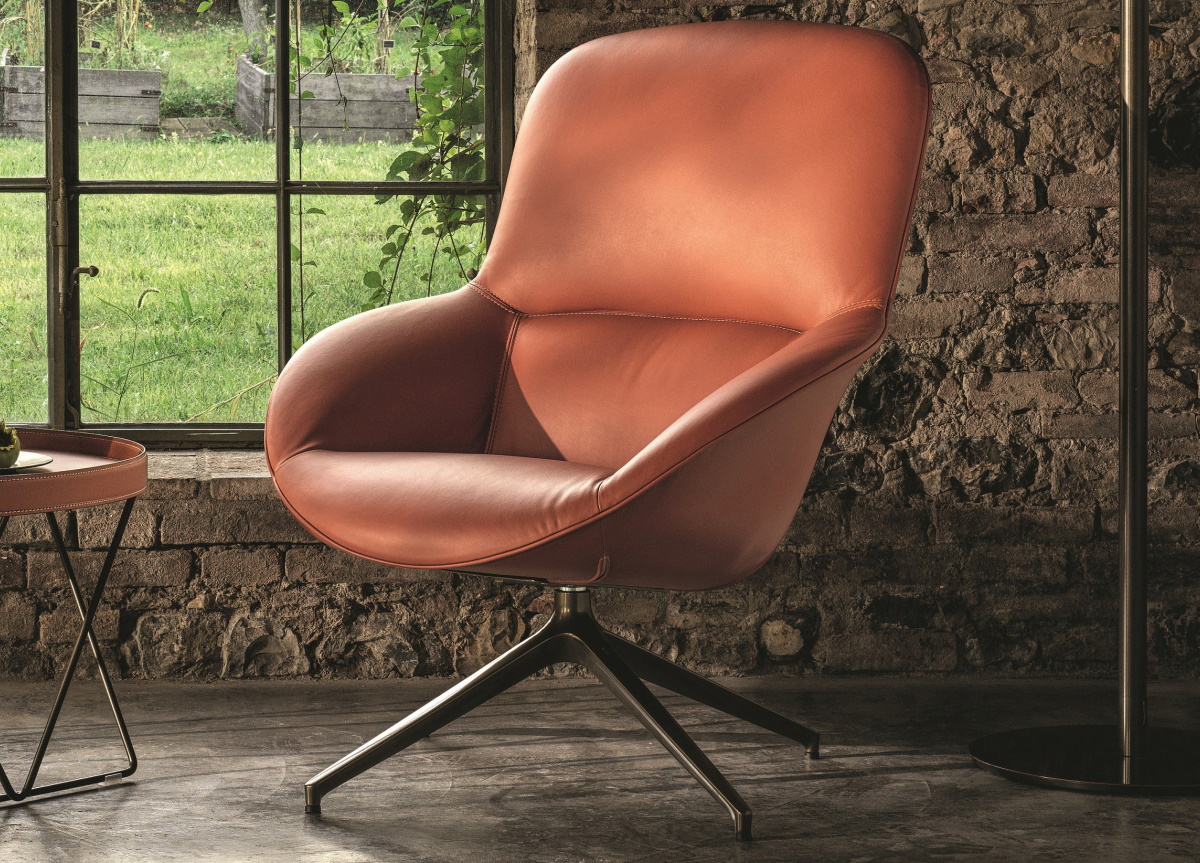 Made in Italy by Bontempi the swivelling Long Island Armchair is surely one of the most comfortable armchairs that we offer with its deep upholstered seat and tall, supportive back.