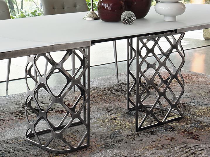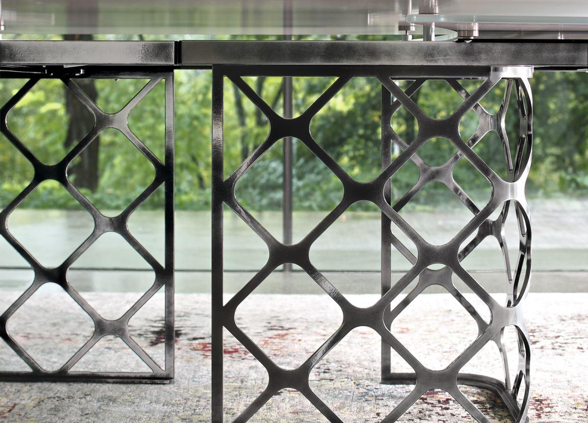 The Majesty extending glass dining table is designed by Marco Conti as part of a stunning modern furniture collection for Bontempi in Italy.