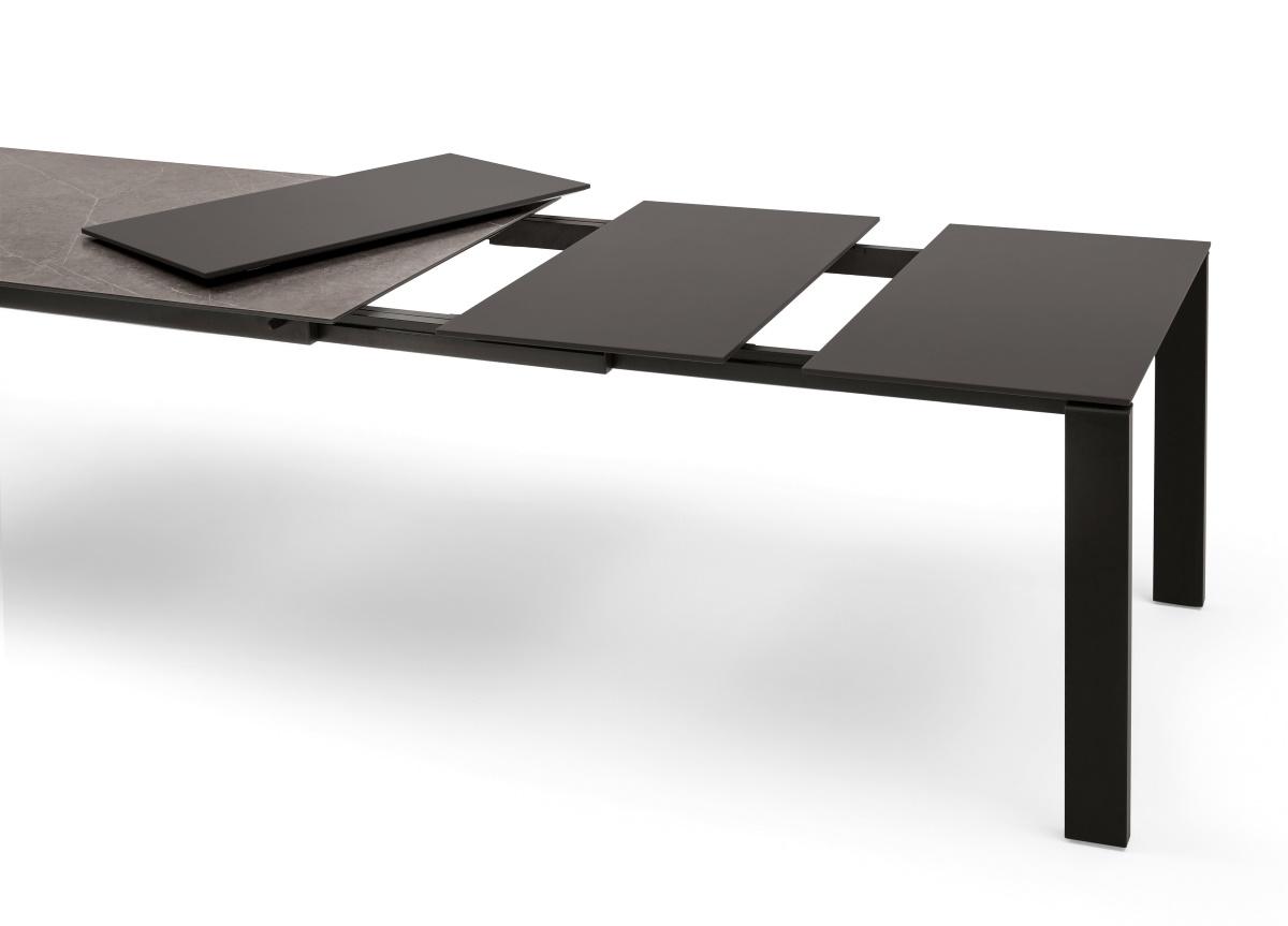 The extensions are really easy to fold out and are situated at one end of the table. Melamine and wood tables have extensions in a matching finish. However, glass, SuperCeramic and SuperMarble tables have similar coloured matt lacquered wood extensions (except dove grey glass which has sand coloured extensions).
