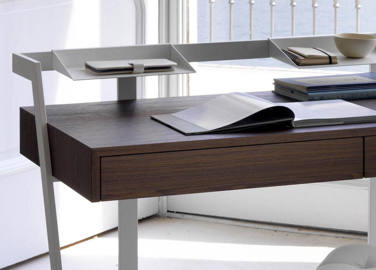 The Zac desk from Bontempi ticks all the boxes for a stylish home office desk, with a slimline top that is just the right size, two useful storage trays on the frame above the desk & two drawers.