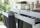 The internal panels and accessories are available in either rovere (oak) gessato (off white oak), rovere brown or rovere grey. They are also available in many matt lacquer colours. Some of the drawer units are also available with glass fronts. We have samples of all the available finishes in our London showroom.