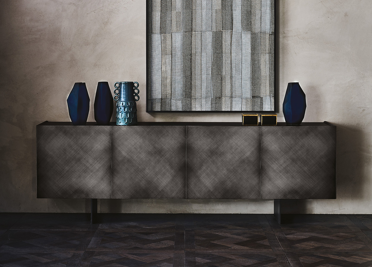 The Cattelan Italia Arizona sideboard by Alessio Bassan has doors with delicate metallic scratches creating a unique effect.