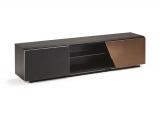 The Cattelan Italia Aston TV unit by the STC Studio has one door in quilted ecoleather or soft leather and another in either a wood or brushed bronze finish with a central open mirrored section.