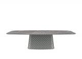 The Cattelan Italia Atrium Keramik table by Paolo Cattelan has a stunning WOW factor base made from two finely worked plates of couture mirrored fumé or bronze glass that gives it a three-dimensional effect similar to quilted fabric.