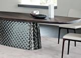 Table with base in mirrored and quilted fumé or bronze curved glass.