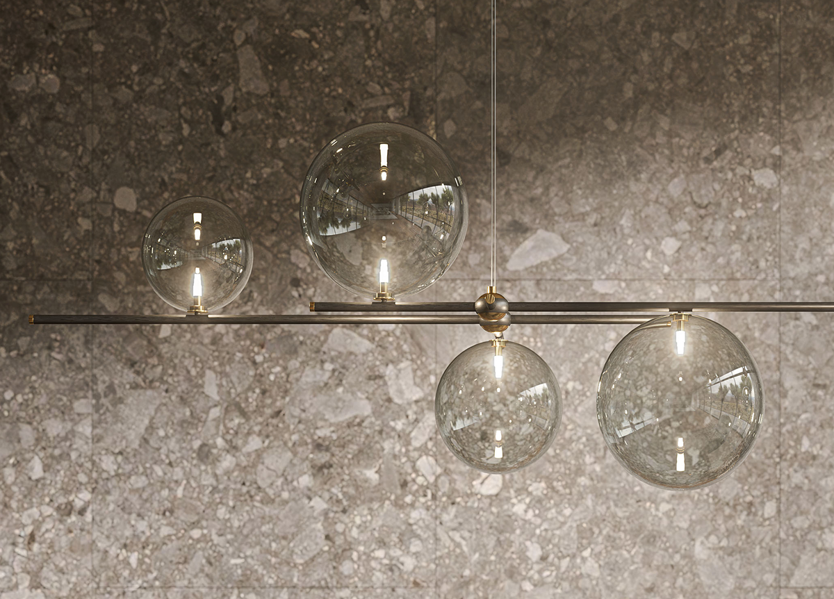 The Bloom Chandelier comes in several different sizes, making it a perfect addition to any space. Due to its modularity, it is even possible to have several chandeliers side by side to create an ever more stately effect. The frame is manufactured in a Satin Iron Grey Steel , with the essential joints and axles of the branches embellished and accentuated by a brushed brass finish.