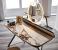 The lower profile and rear tray are available in a brushed bronze or grey finish which is hand applied so any colour and brushing variations are unique characteristics and should not be considered as defects. For the stylish criss-cross base you can choose from titanium, bronze, or black embossed lacquered steel. The mirror frame, shelves and supports are in similar finishes as well as hand brushed bronze or grey.