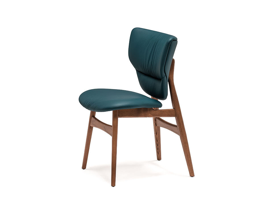 Chair with frame in Canaletto walnut stained ashwood (frNC), burned oak stained ashwood (frRB) or open pore matt black (fr73) ashwood. Seat and back upholstered in fabric, synthetic leather or soft leather. The cover is not removable. (Stool version is available).