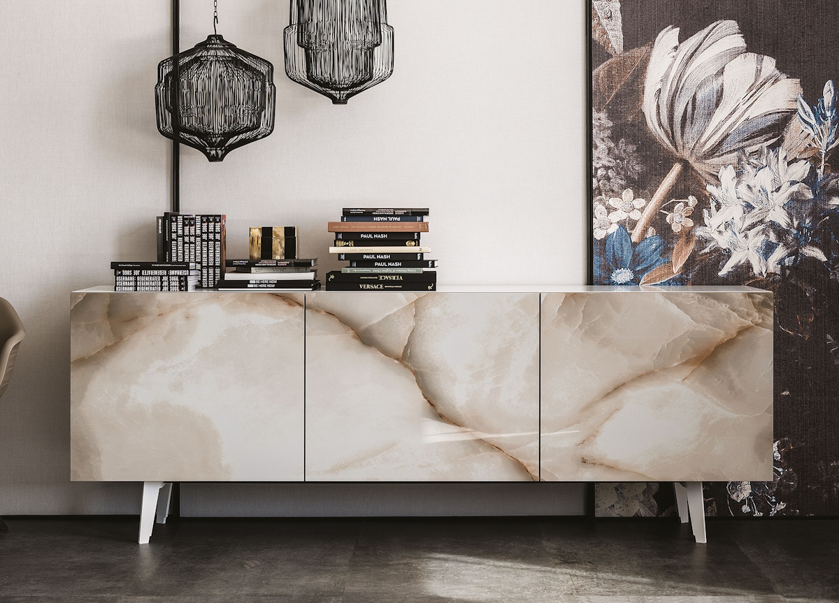 The Cattelan Italia Metropol sideboard by Paolo Cattelan has three doors made from luxurious Marmi ceramic, an extraordinary material which offers a seamless blend of beauty and practicality, the stunningly beautiful surface has the veins and natural look of marble.