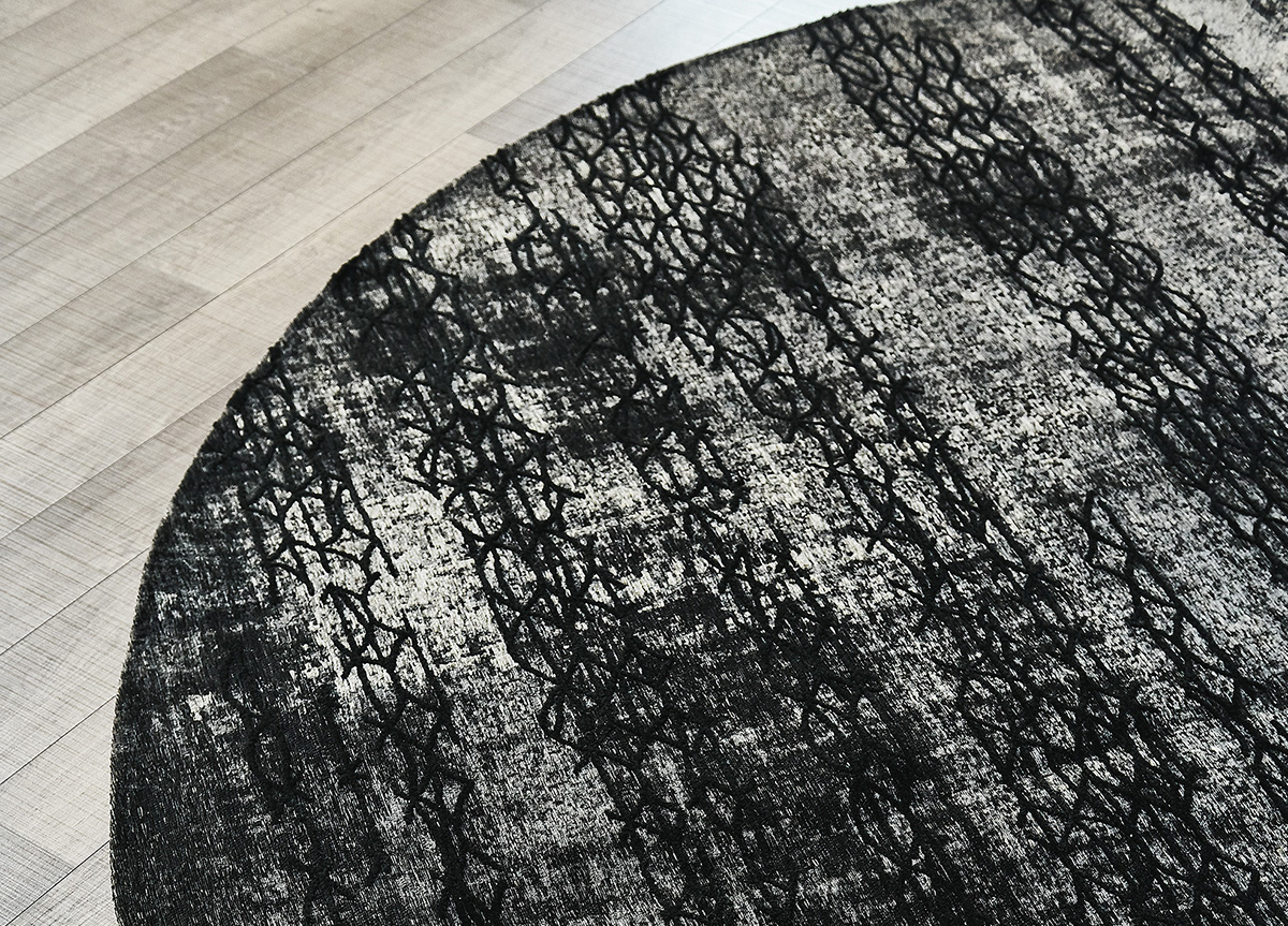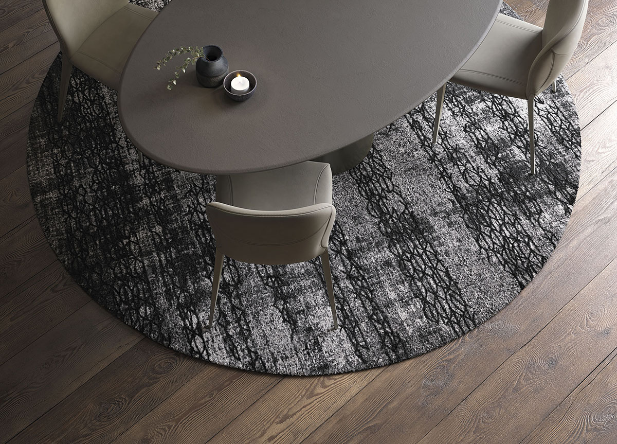 The Cattelan Mumbai circular rug by STC Studios is a large 3 metre across rug, with a striking pattern, designed to complement Cattelan's beautiful dining tables, working equally well in modern or older homes.