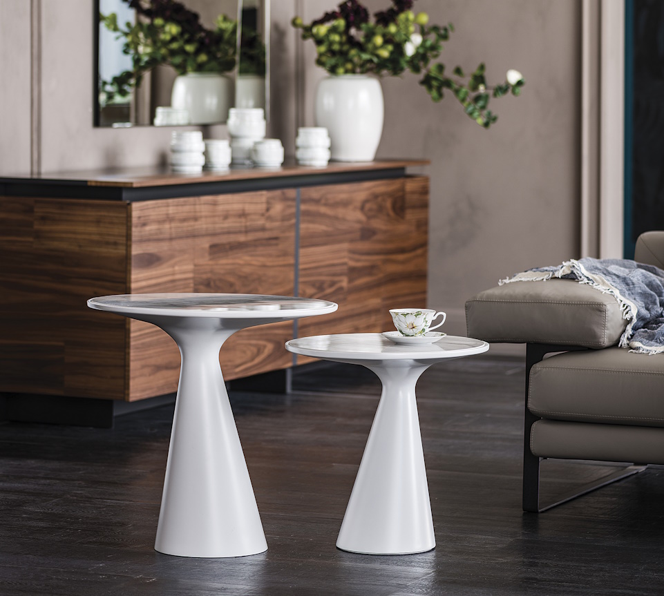 Available in two sizes, the standout element of this round coffee table is the luxurious Marmi ceramic table top. This stunningly beautiful surface has the veins and natural look of marble and is available in a range of captivating finishes allowing you to customise and personalise your aesthetic vision. The base can be selected in either matt white or titanium.