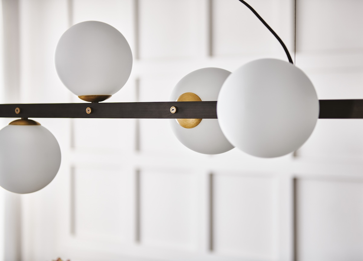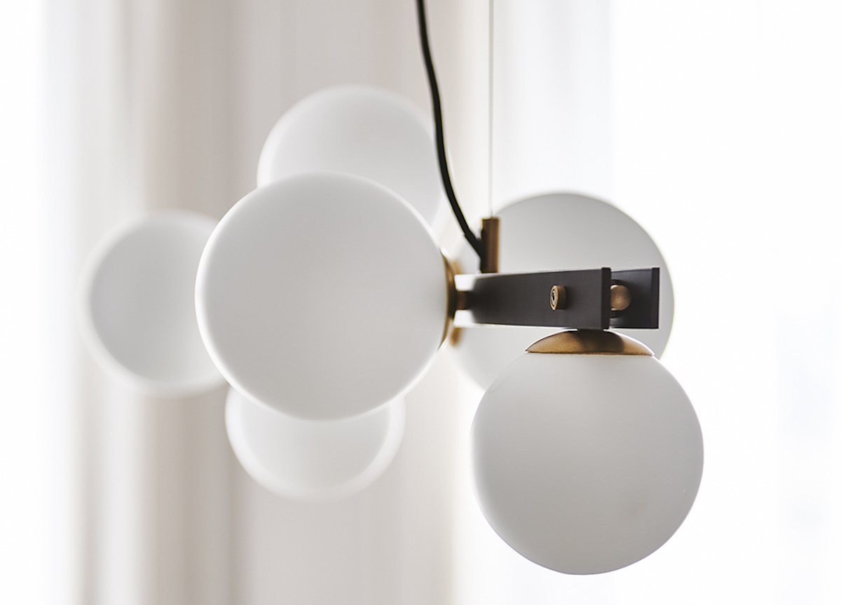 The Cattelan Italia Planeta pendant light by Studio Kronos draws its inspiration from 1960s designs and features seven white satin blown glass shades.