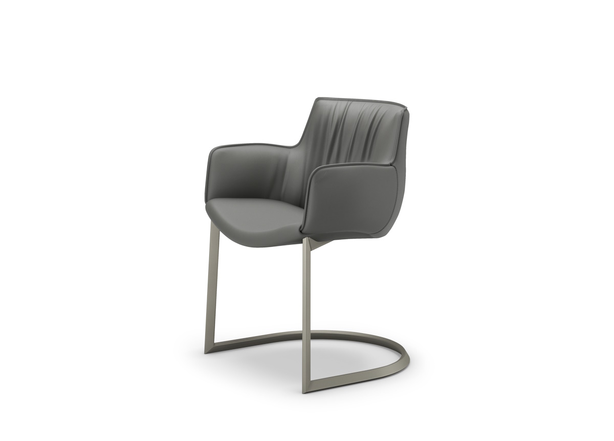 The Cattelan Italia Rhonda Cantilever dining chair by Luca Signoretti features a typical cantilever frame made from a single steel bar.