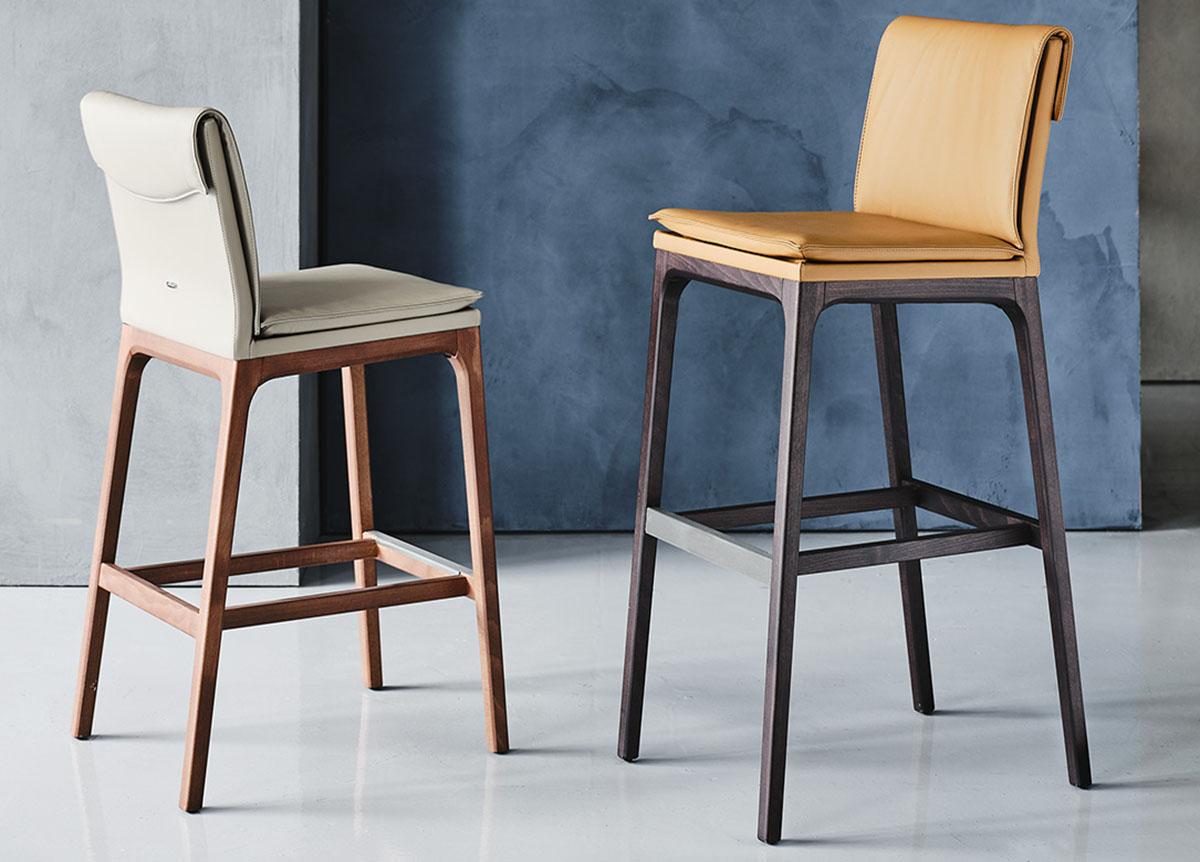 The Cattelan Italia Sofia bar stool is the perfect solution for both dining room and kitchen spaces. These elegant upholstered bar stools have a timeless design, with ergonomic cushions combined with a beautiful wooden base. The light cushioning appears to gently veil the seat and envelope the backrest, folding over the top.