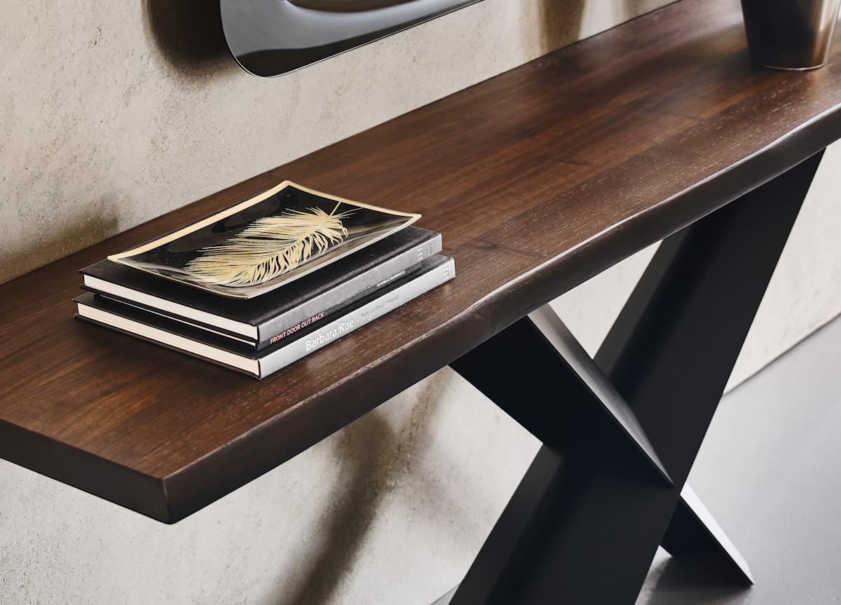 The Cattelan Italia Terminal console table by Paolo Cattelan has a solid wood table top with irregular edges which can be selected in a range of wood finishes in three sizes.