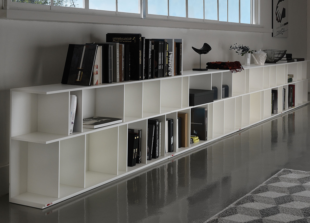 Modular bookcase in three versions B, 65 & 105 in titanium (GF11), graphite (GF69) or white (GF71) lacquered embossed MDF.