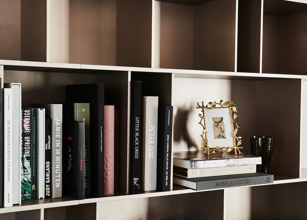 Available in three versions B, 65 & 105 which can be used alone or combined together to adapt to the walls of any room. Moreover, the different sizes of the wooden compartments highlight the shapes of the books and objects, displayed like symbols of one's passions and interests.