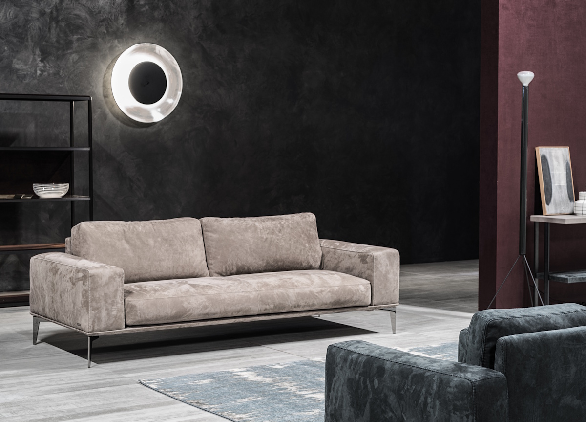 The Cierre Aida A sofa by Stefano Conficconi is both proportionate and balanced, the thicknesses of the structure perfectly blends with the elegant chromed metal legs which can be selected in polished or black chrome.