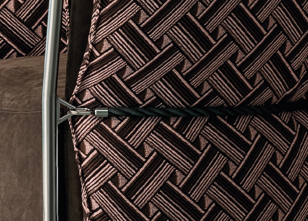 The Cierre Belt sofa by Marco Fumagalli takes its name from the elegant leather belt that wraps around the back and sides of the sofa to create a stunning eye-catching detail.